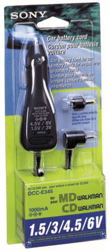 The Sony DCC-E345 DC adaptor is a critical accessory when considering using a personal CD or minidisc (MD) player as a vehicle player. This adaptor will provide unlimited power to your CD or MD player via a vehicle's cigarette lighter. With the five foot long cord, there is ample availability to weave the power cord in a hidden manner. To help with various voltage requirements, Sony has given this adaptor four voltage options (1.5, 3.0, 4.5 or 6.0.) Simply match the required voltage with the selected switch on the adaptor and you are up-and-running. With the DC adaptor you are sure to never run out of batteries while listening in your car or truck.
